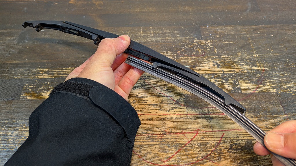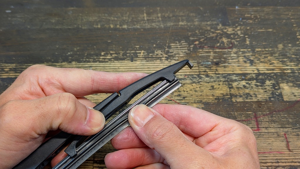 ワイパーブレードを取り外さななくてもゴム交換は可能ですが、取り外した方が作業性が良いです。