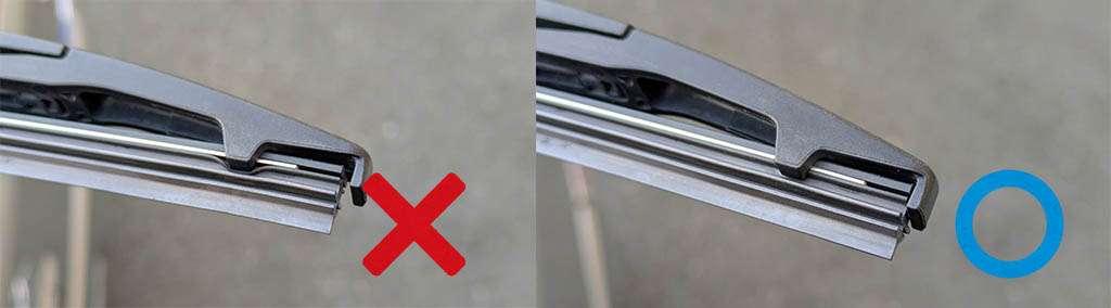 ワイパーブレードの爪にゴムがしっかり取り付けられているか確認しておきましょう。溝にうまくハマっていなかったり、シワがある場合はしっかりとハメ込んでおきます。